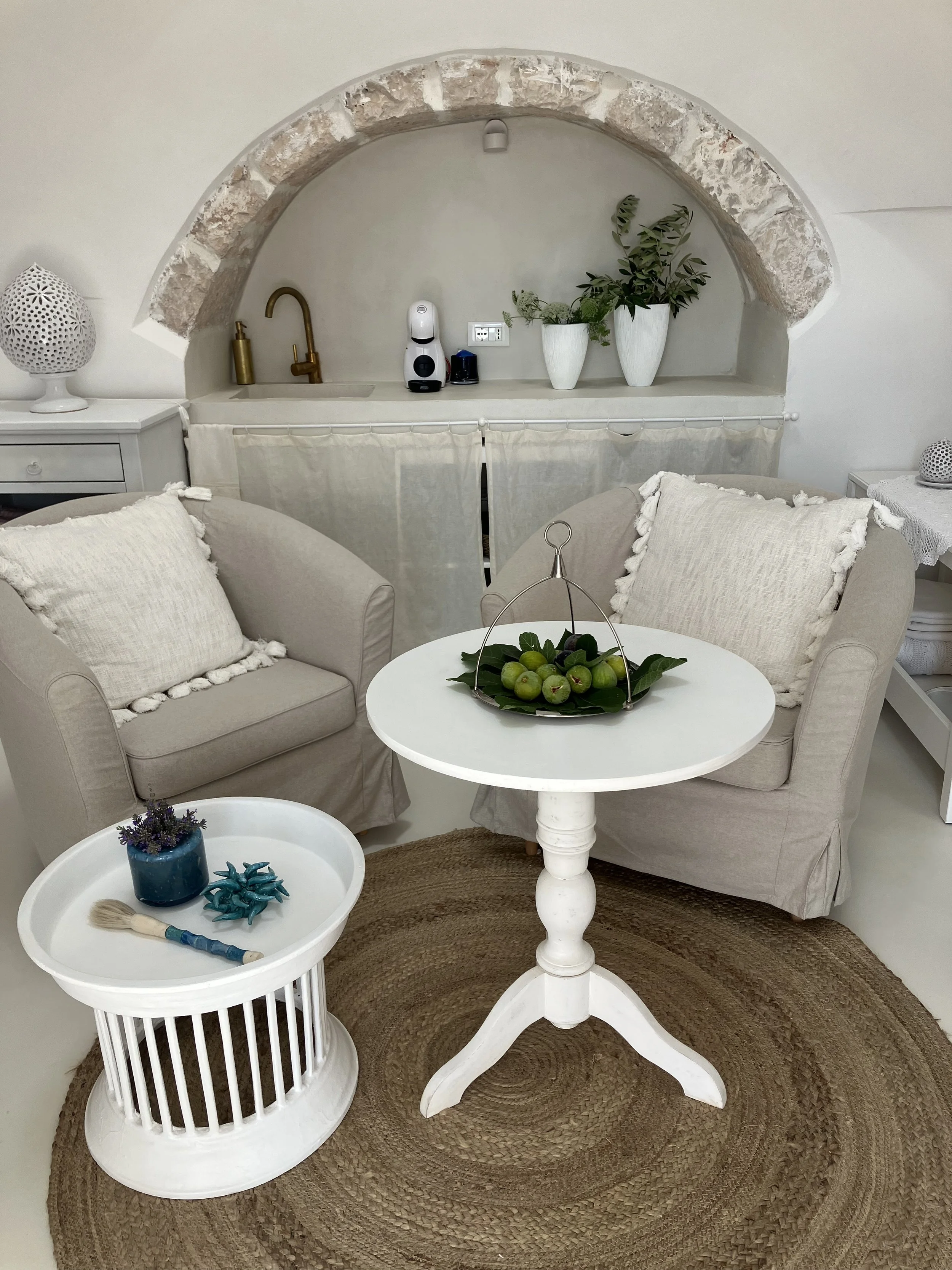 Der Trullo Casa Lusc eignet sich für bis zu 2 Personen und besteht aus einem romantischen offenen Raum mit einem gemütlichen Doppelbett, Badezimmer mit Dusche, Wohnbereich, sowie einer Nische mit Kaffeemaschine, Wasserkocher, Kühlschrank, Waschbecken und diversen Utensilien für den täglichen Gebrauch. Eine grosse gemütliche Lounge mit Blick auf die Olivenbäume ist für Euch reserviert.